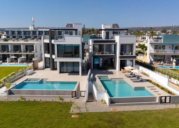 Aqua Beachfront Villas - Villa 2 アヤナパからウォーターワールドまで徒歩で9分で、Vathia Goniaは歩いて7分離れています。 施設は4のバスルーム、器具でいっぱいの台所と4のバスルームがあります。